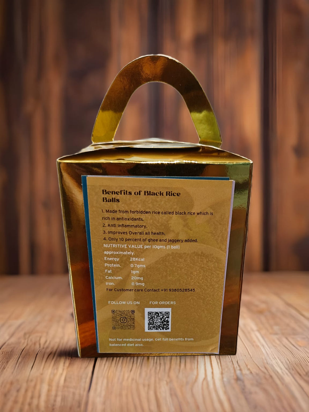 A wholesome energy bite made with nutrient-rich black rice, black urad, coconut, almonds, elaichi, nuts, seeds, and dry fruits. Packed with antioxidants, fiber, and natural goodness, these balls are the perfect guilt-free snack to boost energy and support overall wellness.